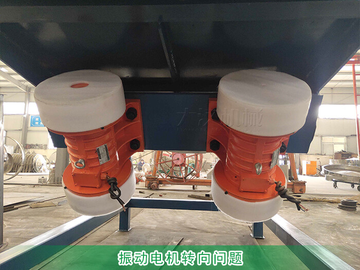 直線篩時(shí)使兩臺(tái)臥式振動(dòng)電機(jī)作為振動(dòng)篩,電機(jī)的轉(zhuǎn)向和分為正轉(zhuǎn)和反轉(zhuǎn)兩種,正常情況下兩臺(tái)電機(jī)的轉(zhuǎn)向是相反方向的,但如果用戶在接電時(shí)正負(fù)極接錯(cuò)就會(huì)引起電機(jī)同向旋轉(zhuǎn)就會(huì)出現(xiàn)篩面物料不走料的問題;