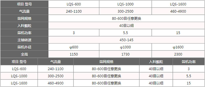 氣流篩篩分效率高、篩網立裝不荷重。適應細度范圍廣,全封閉結構,噪音小能耗低、可連續作業。
