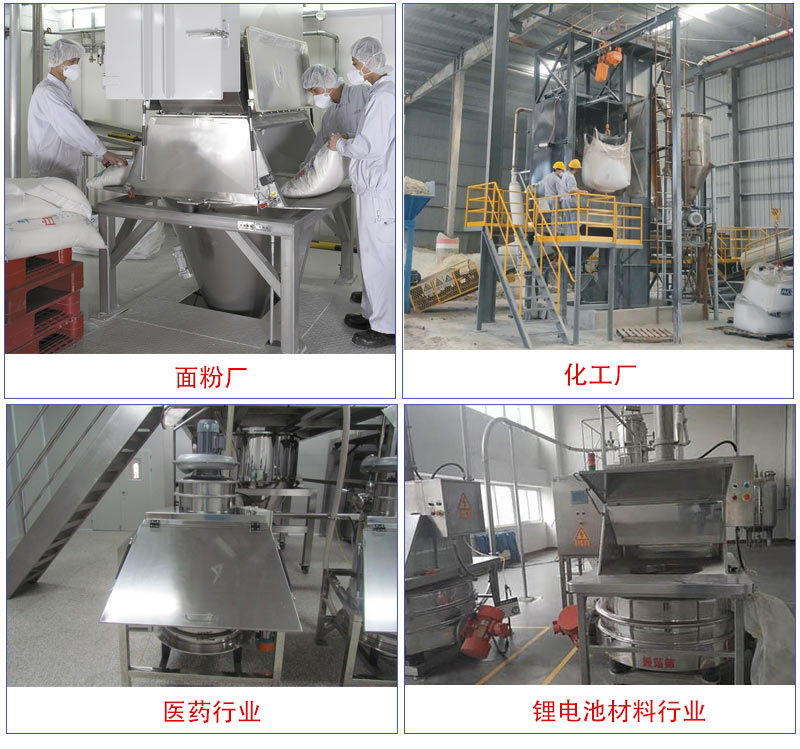 適用:食品、制藥、化工、冶金行業中小袋物料的拆包、投放、篩分和卸料,特別適用于粉料人工投料和預篩分。