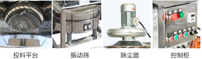 無塵投料站由人工卸料臺、下料倉、集塵系統、振動篩、過濾系統、反吹除塵氣囊等部件組成。