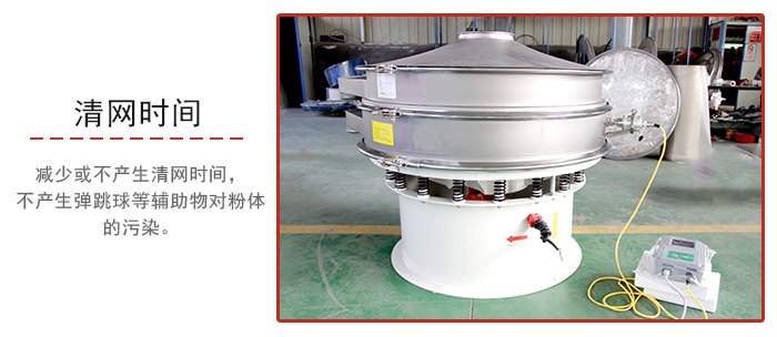 改善低密度粉在重力沉降中的平降(粉末與網(wǎng)口輕接觸)滑移效應(yīng),改善高密度金屬在網(wǎng)口滯留或楔入,改善帶靜電粉體的粘附效應(yīng),從而提高篩分效率和篩分質(zhì)量。用篩分通過率表示,一般情況下比普通旋振篩增加通過率50%-400%。